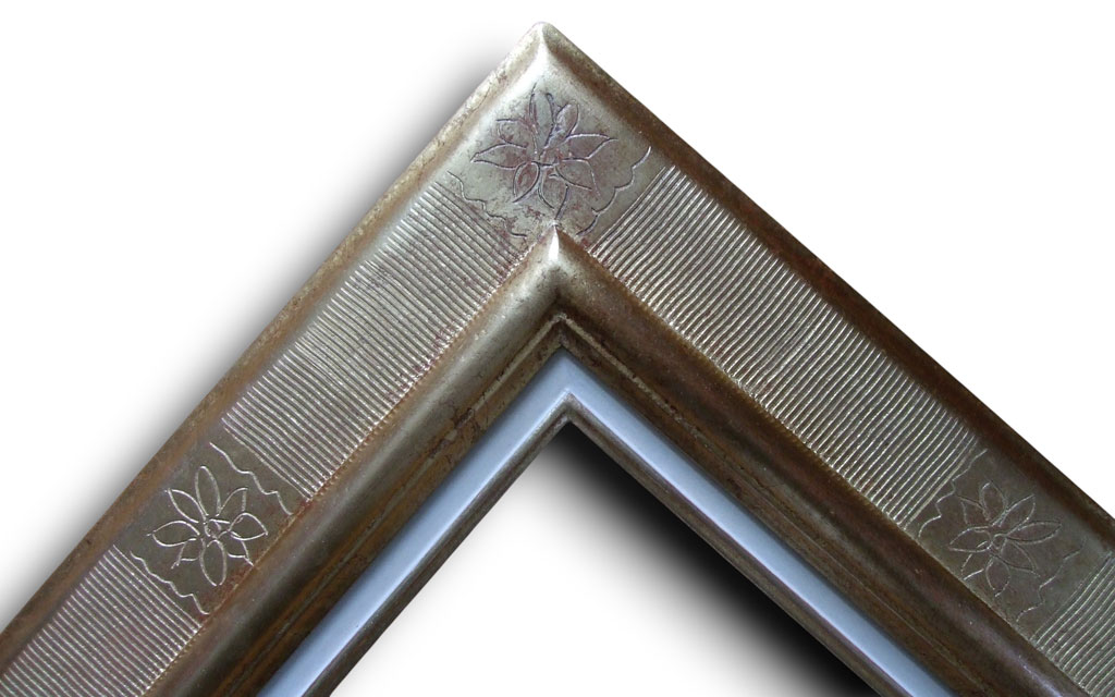Sculpté baroque argent vieux bleu